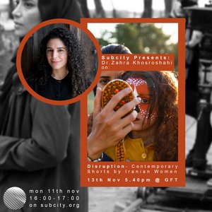 Tune in to subcity.org at 4pm to hear Dr. Zahra Khrosroshahi talk to us about ‘Disruption’, an upcoming screening of Iranian short films [at the GFT …
